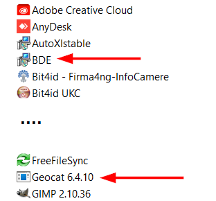 in casi come questo significa che si è alterato qualche file, quindi è necessario reinstallare il software, fai così: apri il Pannello di controllo di Windows, seleziona BDE (vedi qui sotto) e attiva l’opzione Disinstalla dal menù che si apre con clic destro. Poi fai la stessa cosa con Geocat (non importa quale versione hai installato):