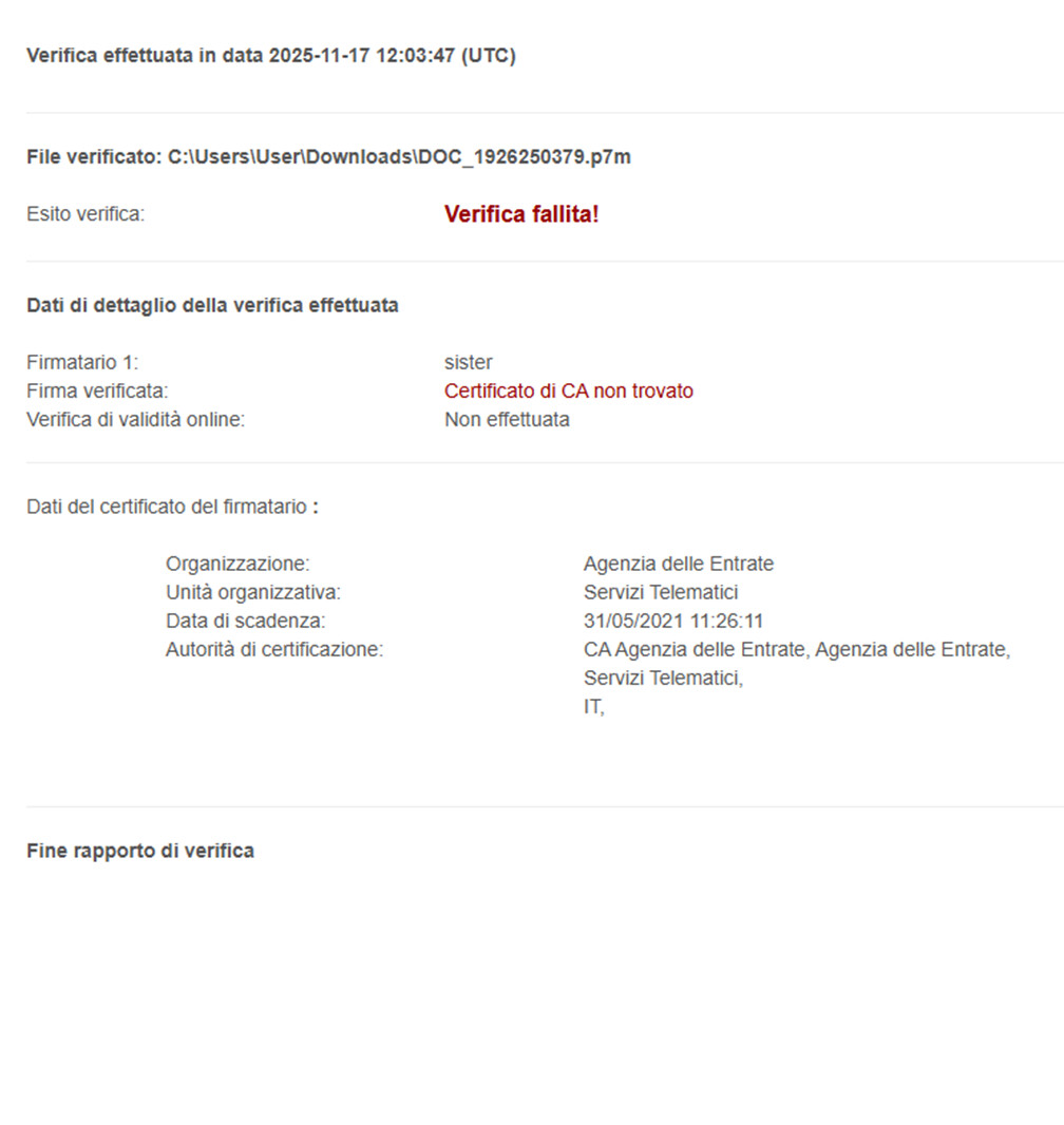 poi i file firmati da Agenzia delle Entrate non sono perfetti . . .