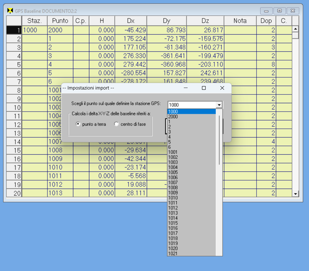 L’import aggiornato è sempre quello dell’opzione TRIMBLE DC 2 della finestra Configurazione | Strumento: