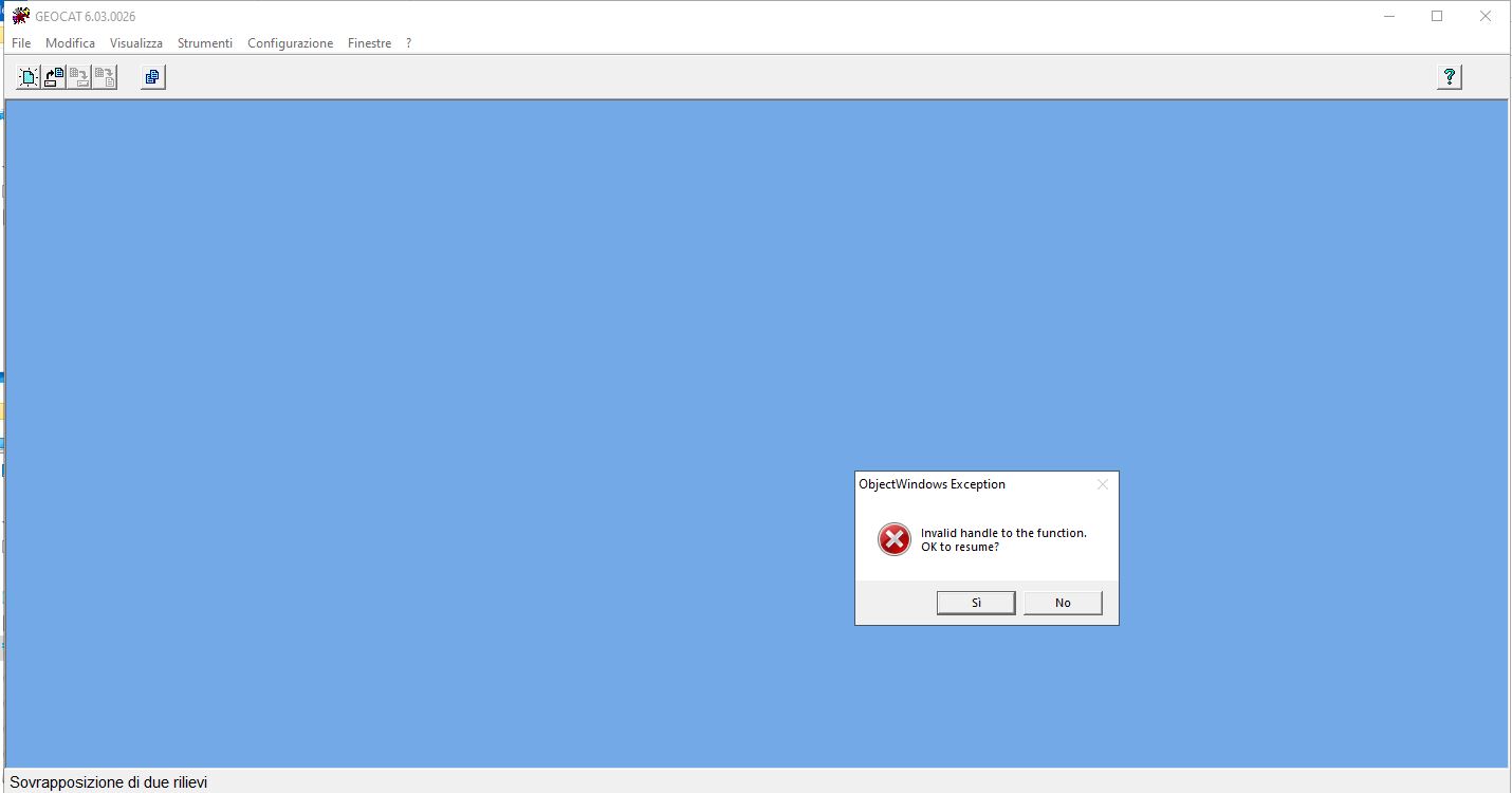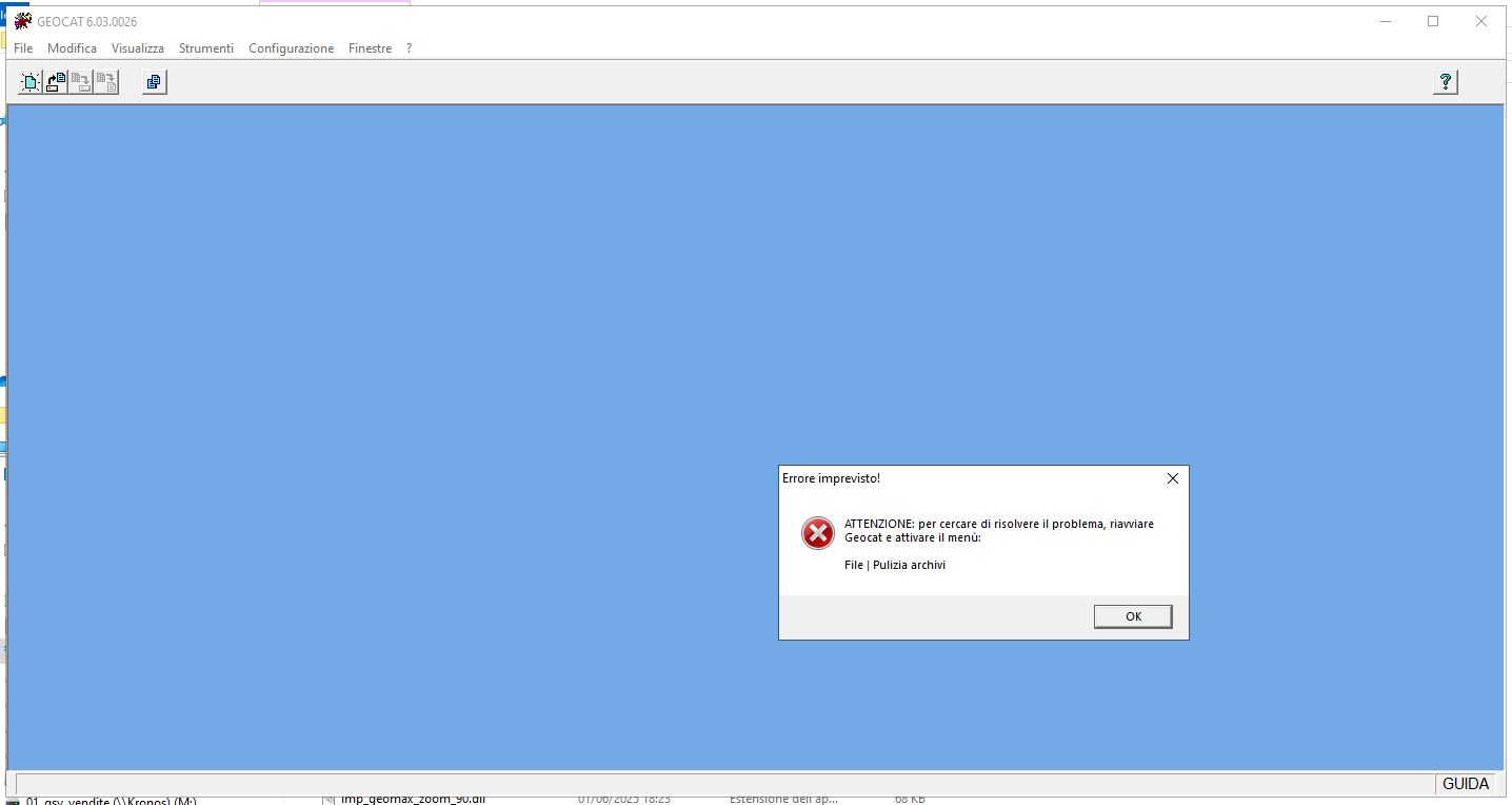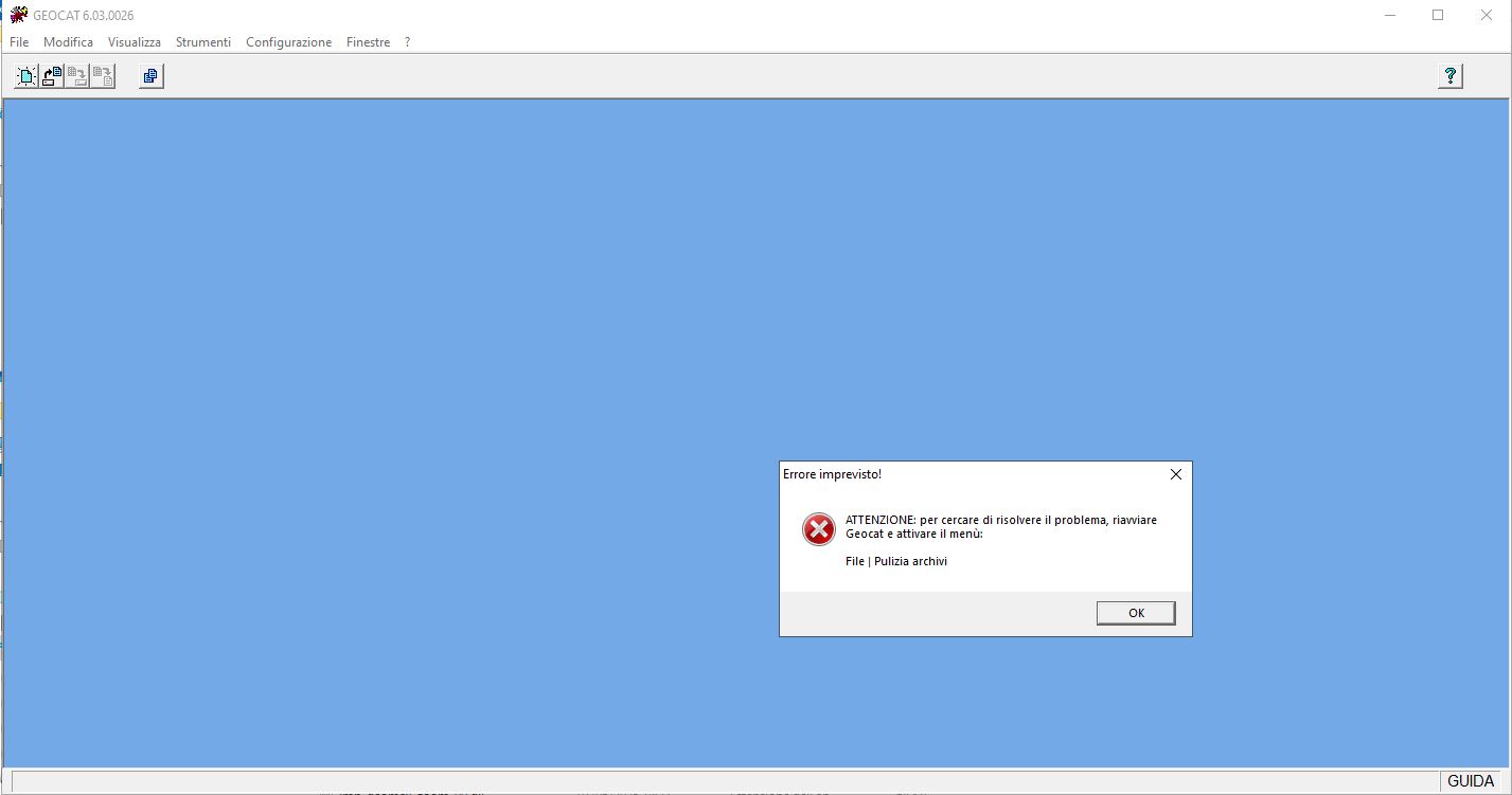 Buondi gianni, ho installato la nuova versione di geocat e quando apro un nuovo lavoro mi da questa serie di errori. Ho provato anche a disinstallare cancellando tutto e reinstallare di nuovo ma continua questo problema. si allego delle immagini sugli errori che mi da in modo da porter verificare il tutto. Ho provato a cercare anche il file geotest.txt ma non trovo nulla all’indirizio suggerito dalla guida sul file sentinella.