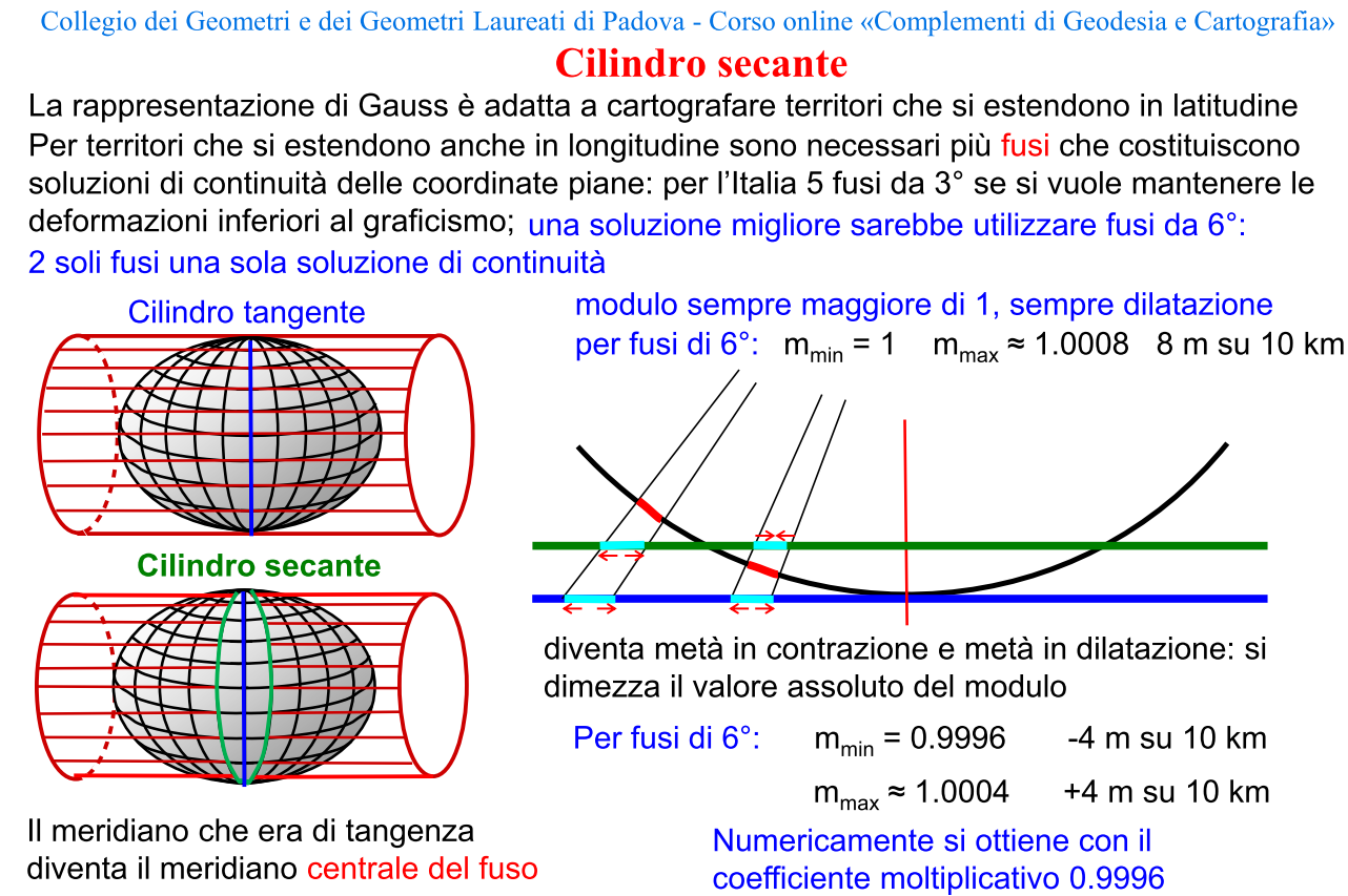 Il sistema Gauss-Boaga si basa su una proiezione cilindrica trasversa, secante lungo due meridiani. È detta anche Gauss-Kruger, nei paesi tedeschi. In Italia è stata proposta nel 1940 da Boaga. Caratteristica della proiezione di Gauss è l’utilizzo di fusi di ampiezza di 6° di longitudine, un fattore di scala (0,9996) derivato dall’impiego di un cilindro secante la superficie di proiezione, la falsa origine delle coordinate piane, la convergenza dei meridiani ai poli.