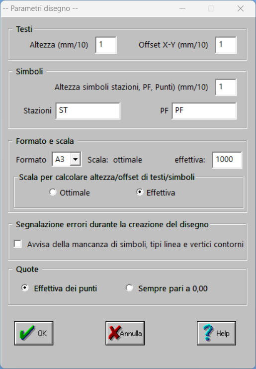 Poi, quando lanci il disegno CAD, inserisci questi dati: