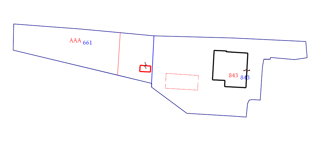Tipo di frazionamento (p.lla 661) + mappale per riportare in mappa un nuovo fabbricato ed accorpare (BBB) ad una particella già all’urbano (p.lla 843)