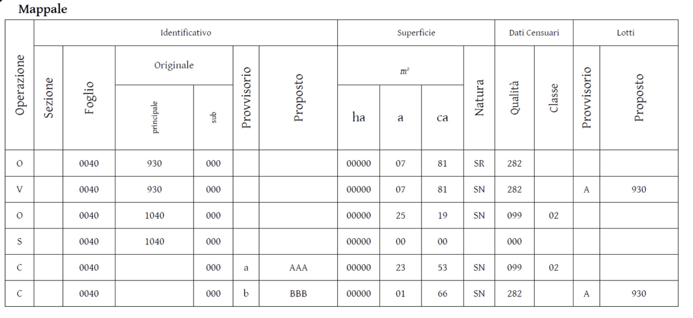 Hai utilizzato come codice del mappale TM (per variazione) o SC (per stralcio di corte)?